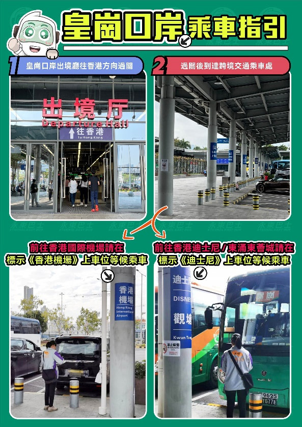 地址: 皇崗口岸去往香港機場/亞洲博覽館/迪士尼/東薈城的話,到達皇崗口岸後,過完內地關,直走30米左右有個永東香港機場上車位的,找永東巴士制服的職員安排上車的