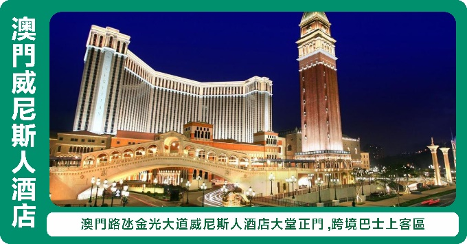 地址: 澳門路凼金光大道威尼斯人酒店大堂正門,跨境巴士上客區