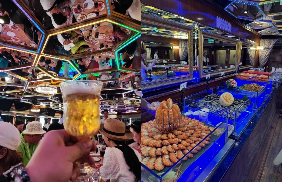 而且,船上的無限暢飲服務和自助餐超贊!
