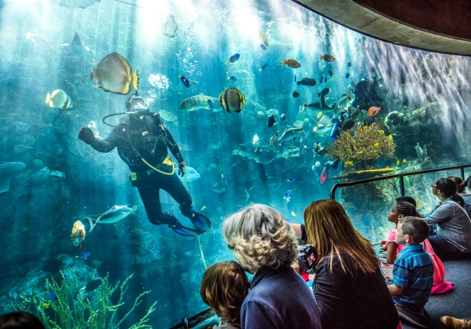館內的巨型鯊魚池是必看亮點,23 公分厚的超白玻璃,讓你近距離欣賞鯊魚、魟魚在沉船景觀中穿梭,畫面超震撼😱!還有互動觸摸池,小朋友可以近距離接觸海星、小螃蟹,培養對海洋生物的興趣。館內還會定時開展餵食體驗、海洋知識講座,玩樂的同時還能學到知識,適合各年齡層遊客。