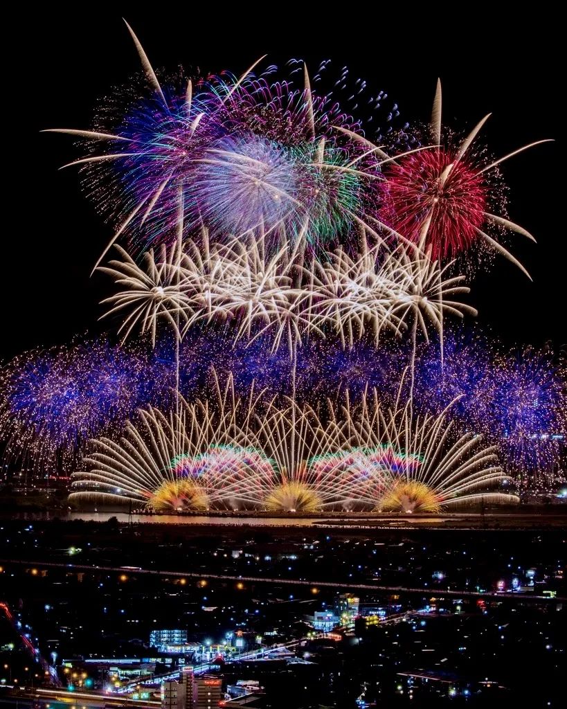 Tips:競技煙花在日本全國僅3處舉辦,堪稱珍貴。約30家參與的煙花企業將以精巧的編排和高超的技術呈現競技煙花,按評審標準打分,內容十分專業。