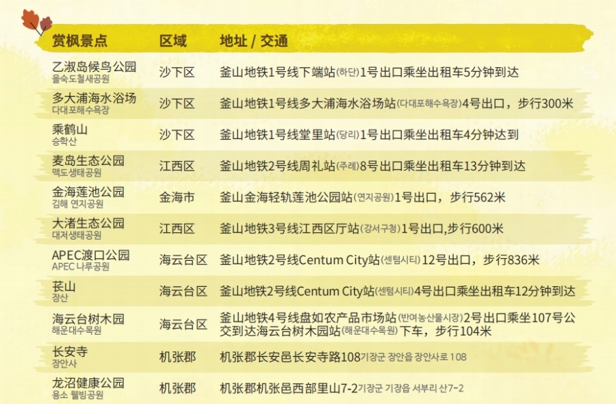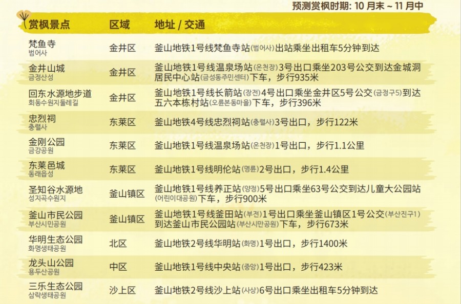 釜山必去紅楓地(含景點、地圖、交通、觀光巴士時間、紅楓時間預測)