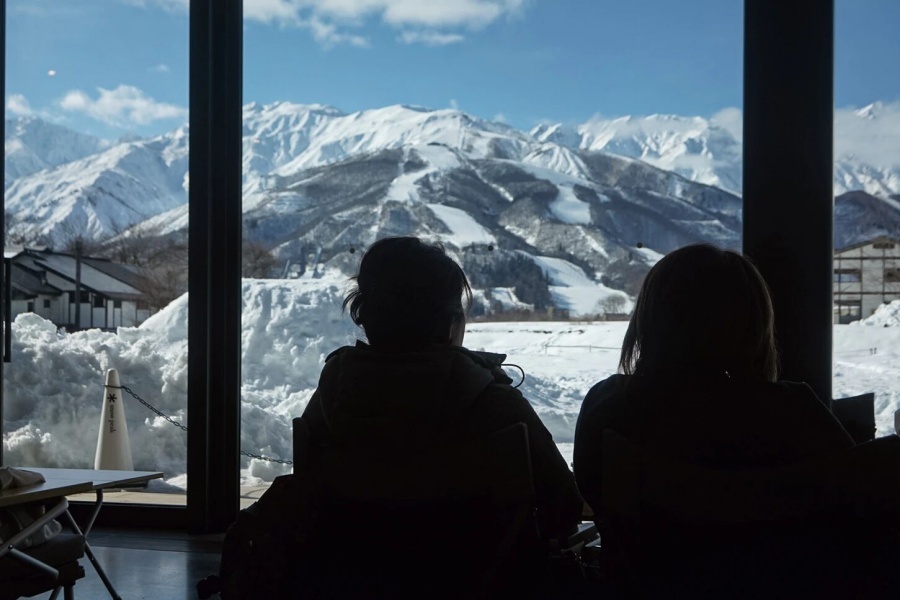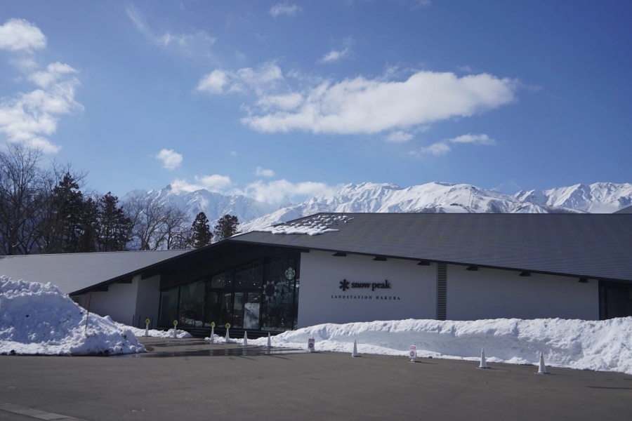 離白馬車站不遠的知名戶外品牌店Snow peak,建築本身非常有特色,是隈研吾的作品,因為直面八方雪場,所以景色更是一絕!裡面有Snow peak的餐廳,但需要提前預約,推薦旁邊的星巴克,視野真的無敵好,可以愉快地坐一下午。