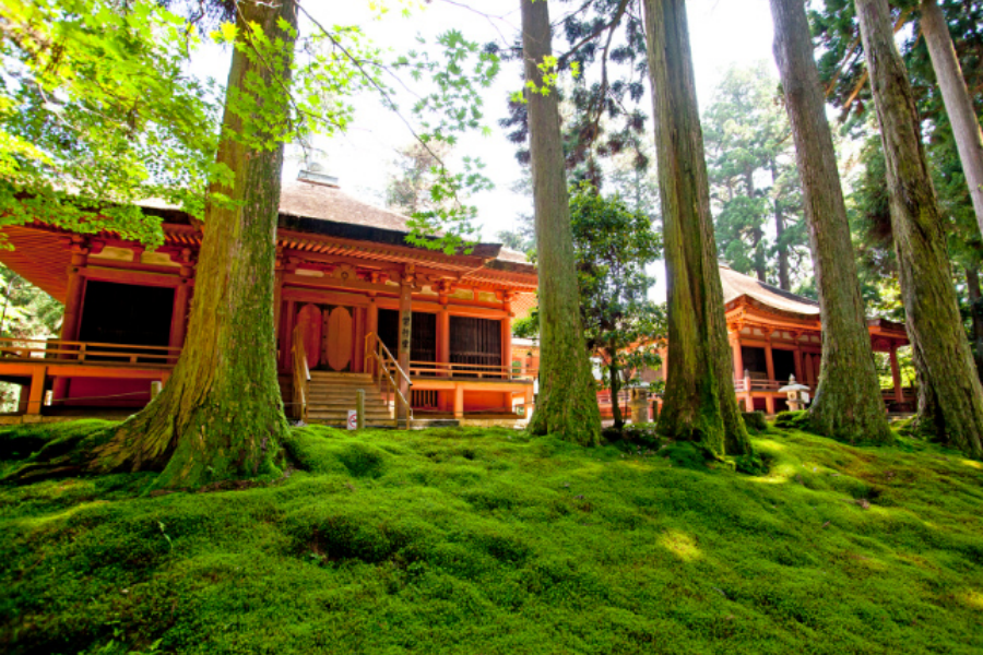 世界遺產比睿山延歷寺是傳教大師最澄(767-822年)於8世紀在比睿山中開創的天台宗總本山。山間的茂密杉樹林之中,寺院面積近1,700公頃,非常遼闊,全盛時期,它曾發展成為有3,000多位研習僧侶的一大道場。這裡曾湧現了眾多振興日本主要佛教宗派的高僧。如今仍有約100座殿堂坐落於此,廣闊的寺內,東區稱為「東塔」,西區稱為「西塔」,北區稱為「橫川」。