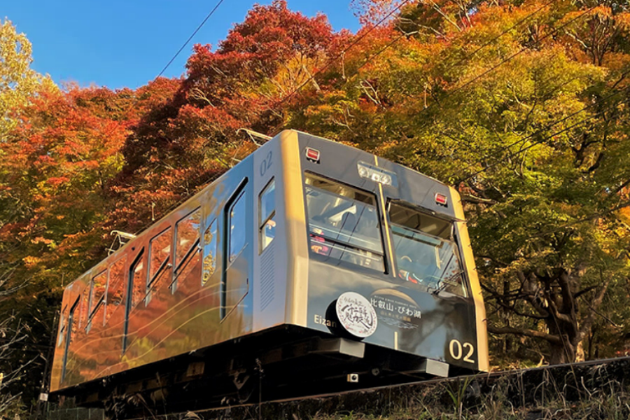 前往比睿山,推薦利用可欣賞壯麗山巒和琵琶湖風光的纜車、索道。從京都方向前往時,由八瀨乘坐睿山纜車、索道至比睿山頂。從東邊的滋賀方向前往時,則由延歷寺的門前町坂本乘坐坂本纜車至東塔。