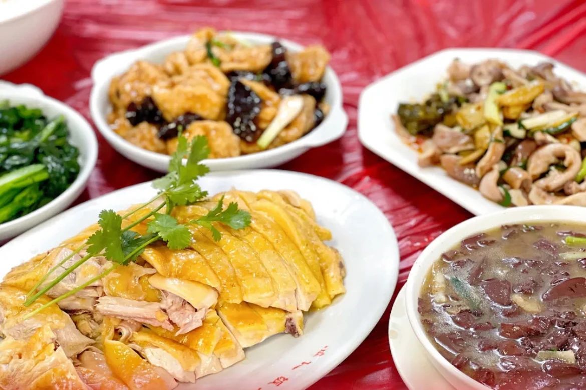 上桌的白切雞外皮金黃,油亮透光,雞肉肌理細嫩,清腴嫩滑,就連慣以幹柴口感示人的雞胸肉也香滑可口,簡直絕了!