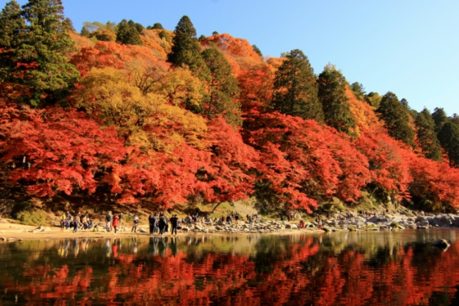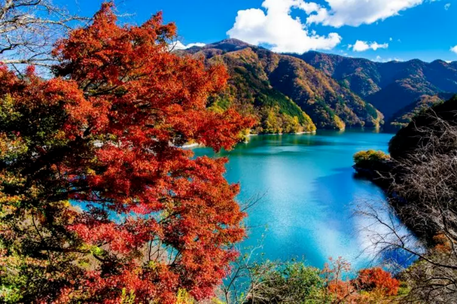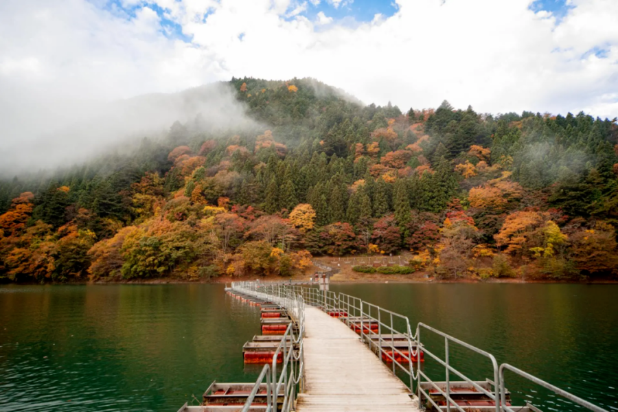 奧多摩湖是位於東京與山梨縣交界的人工湖,它不僅風景秀麗,還是日本紅葉名所之一。湖水平靜,群山環繞,賞楓時可以欣賞到大自然風光襯托著湖面倒影的風景。湖上的“浮橋”是奧多摩湖的出名景點之一,是連當地人都大力推進的賞楓秘境 。
