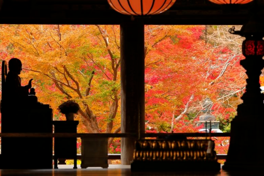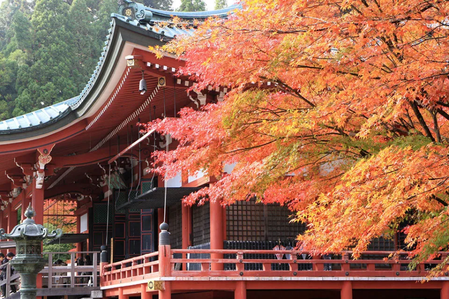 比叡山延暦寺是位於滋賀縣與京都府交界處的聖山,是日本佛教天台宗的總本山,並且被列為聯合國教科文組織世界遺產。比叡山的紅葉美景是秋天的重頭戲,尤其是橫川區的秋天,大殿被火紅的楓樹環繞,景色令人歎為觀止。此外,比叡山延歷寺還擁有約1200年的歷史與傳承,寺內收藏有10件國寶和50多件日本重要文化財產。在遊覽時,可以聆聽阿彌陀堂前水琴窟的悅耳聲音,從山上俯瞰琵琶湖和京都市,享受絕美的風景 。"江上霜楓葉葉紅,不堪搖落又西風。"