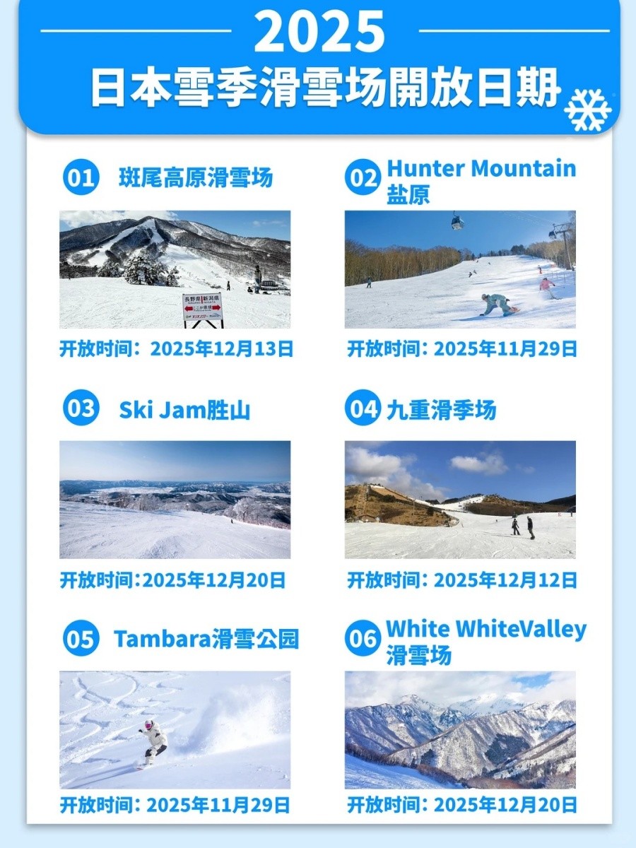 【2025雪季速報!日本滑雪場開放時間表🗓️✨