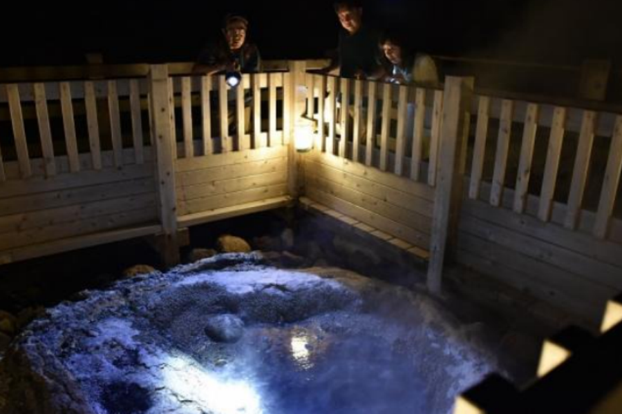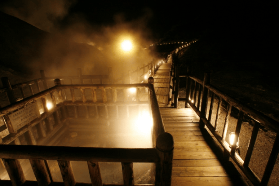 夜晚的地獄谷與白天景色截然不同。從地底升起的白色蒸氣,配上微光映照出的岩石紋理,營造出如夢似幻的景致。沿著搖曳燈火指引的步道前行,最後浮現在眼前的是壯觀的爆裂火口遺跡,讓人彷彿置身異世界般神秘。夜的寂靜與大自然的力量交織而成,帶來一場無可取代的沉浸式體驗。