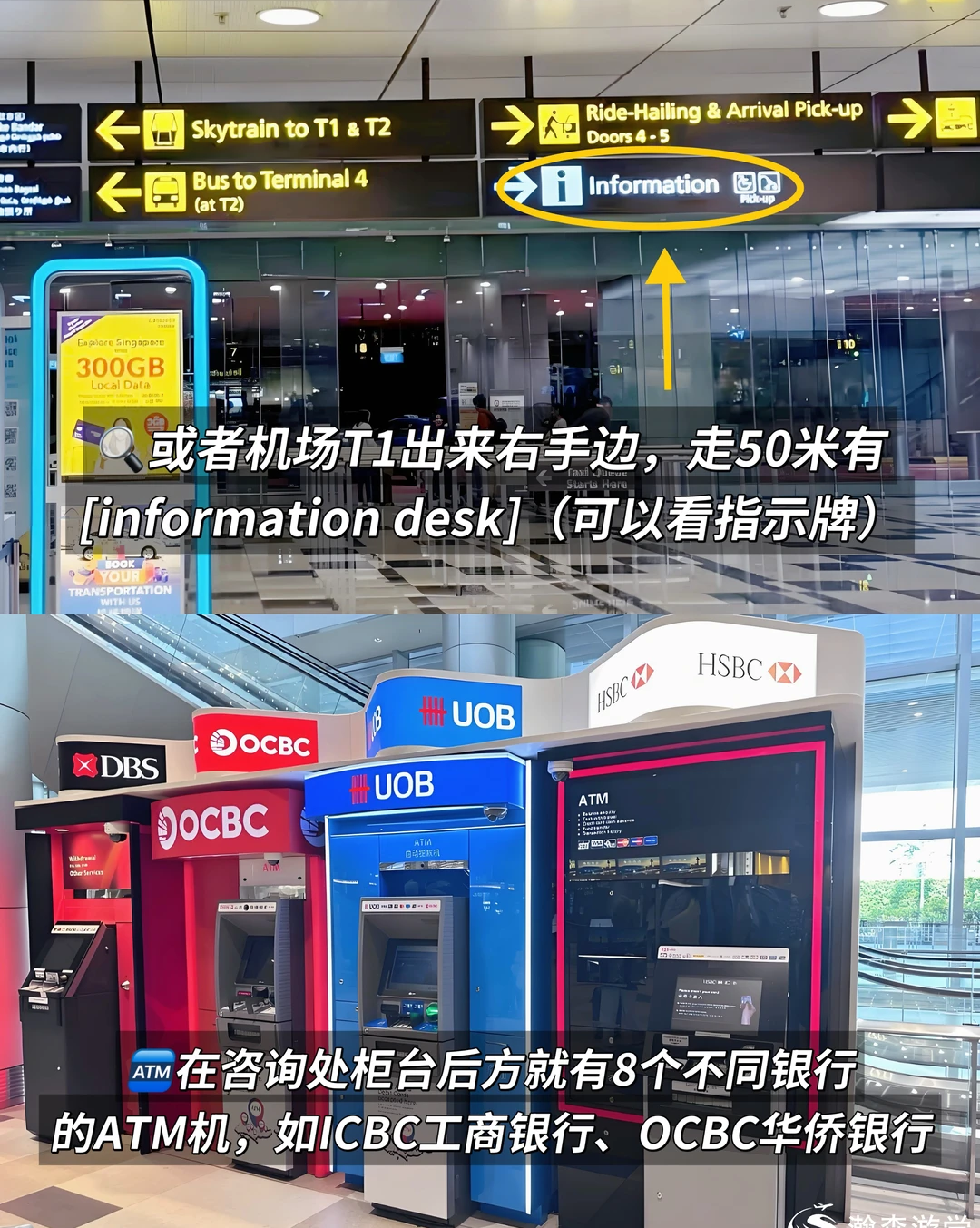 🔍或者看指示牌找“information”,在咨詢處後面就有8個不同銀行的🏧機