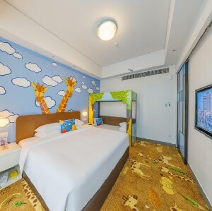 還有部分親子房提供卡通風格的上下鋪單人床,身處房間已感受到長隆主題樂園的歡樂氣氛。
