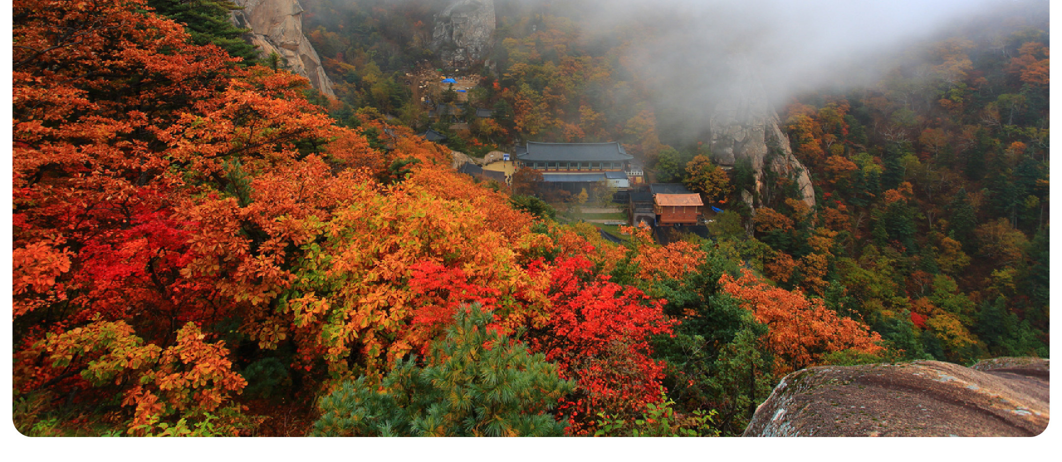 千佛洞溪谷更是雪嶽山賞楓的精華所在。在巍峨石峰間,“V” 字形峽谷內,瀑布、深潭、紅葉、溪流相互交融,構成奇特秀麗的景觀。沿著溪谷前行,潺潺流水聲與楓葉搖曳聲交織,如同壹曲美妙的秋日樂章。周邊的新興寺在楓葉與群山環繞下,顯得格外甯靜祥和,古寺與紅葉相映,更添古樸典雅氣息。