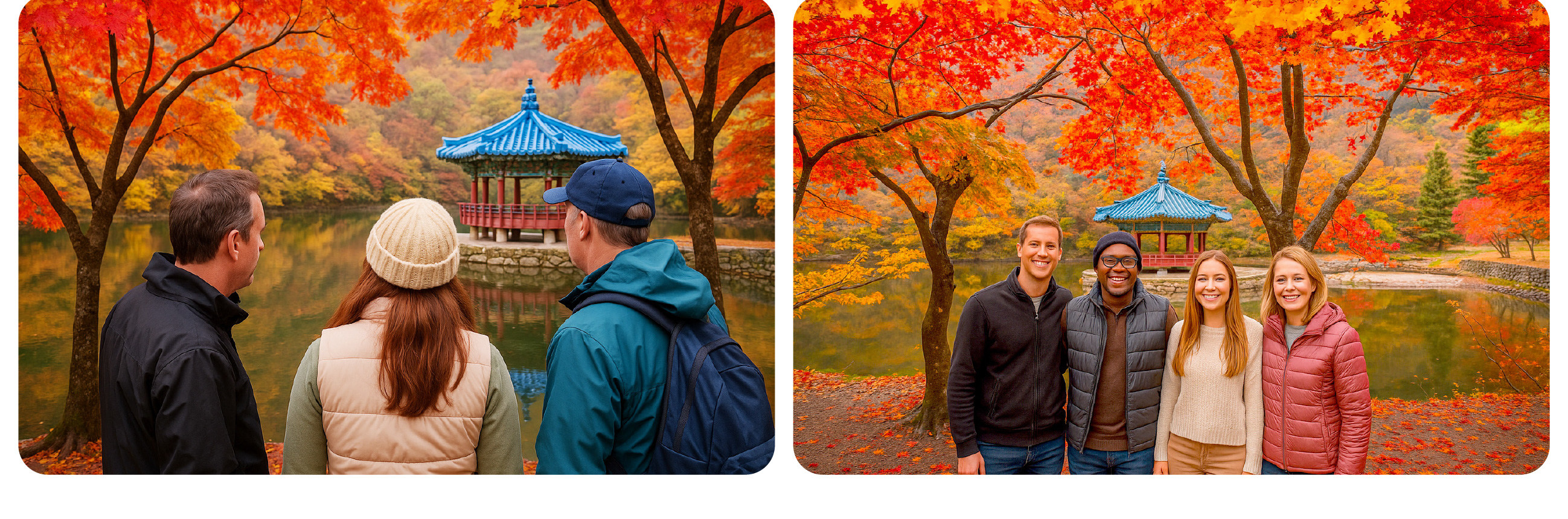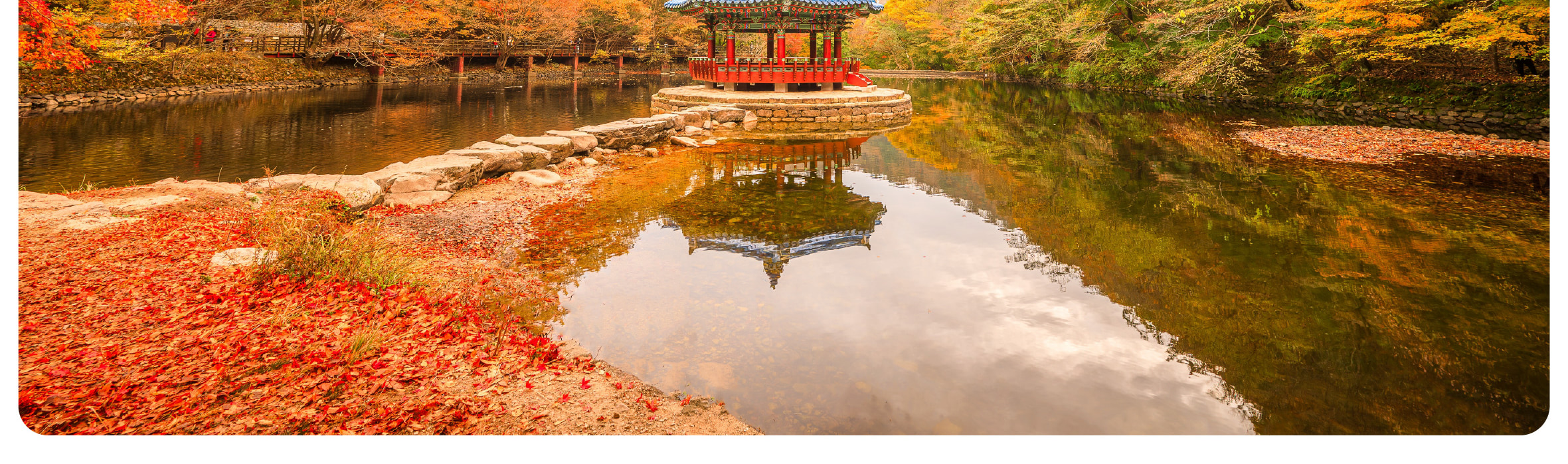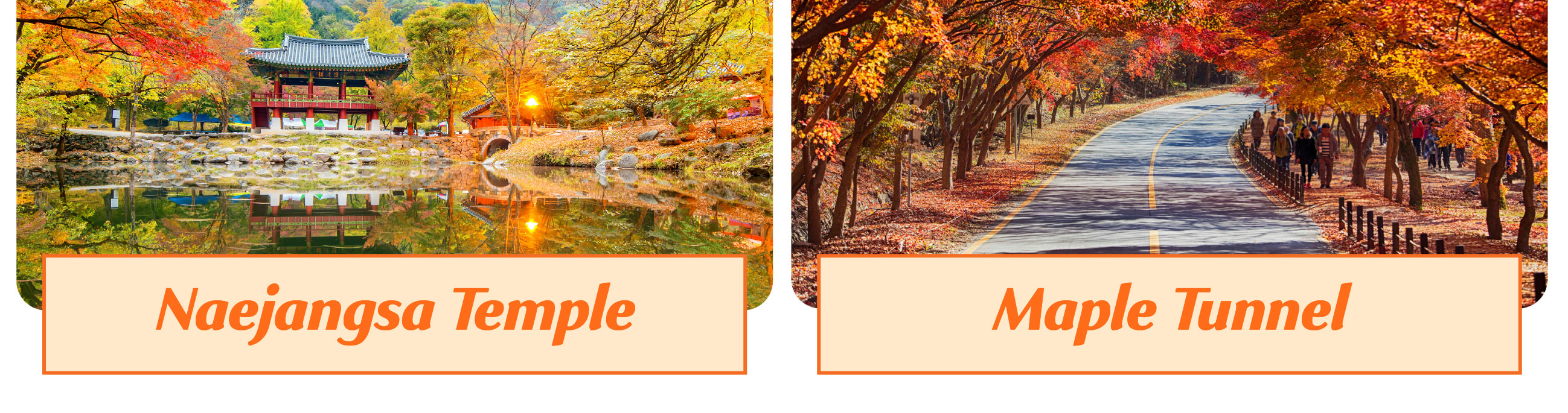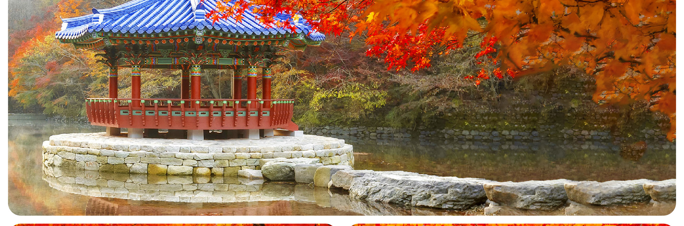 始建於公元 802 年的內藏寺,藏身於楓海深處。寺內千年銀杏與楓樹共生,金黃與赤紅的葉片落在石塔、殿檐上,古剎的晨鐘暮鼓與楓葉簌簌聲交織,形成獨特的 「秋日梵音」。遊客可在寺內參與晨間誦經,或在楓葉環繞的茶寮品一杯韓國傳統茶,讓千年禪意隨紅葉落肩,完成一場身心的療愈。
