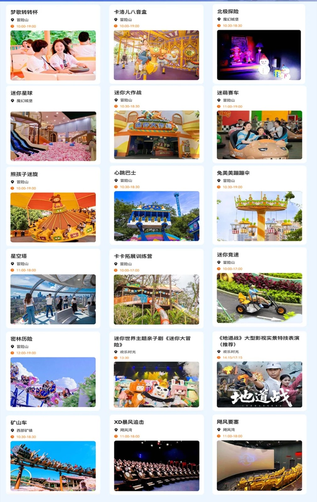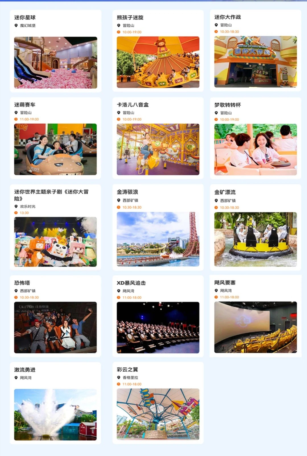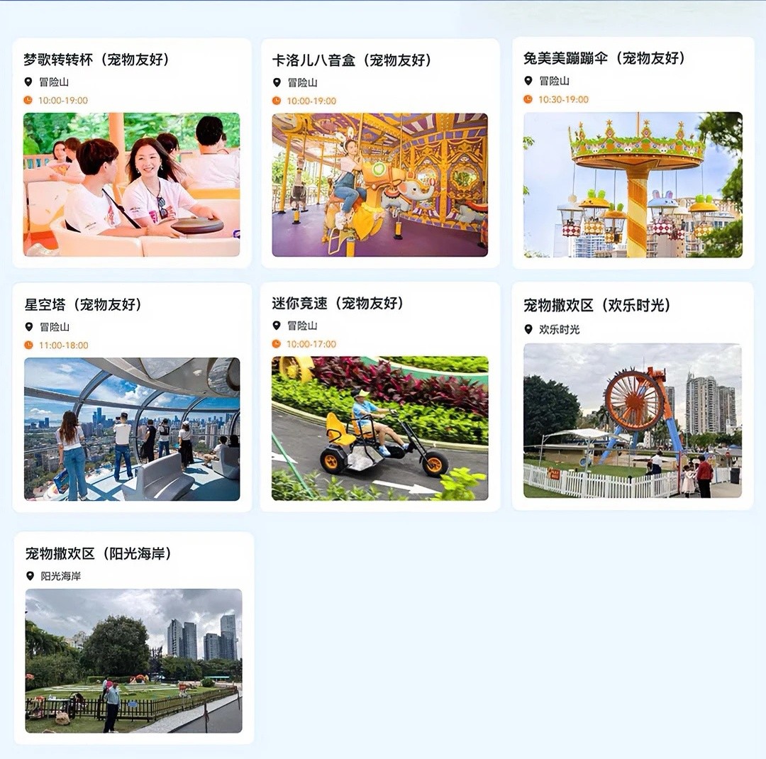 迷妳世界冒險山:這裏是迷妳世界P潮玩主題區,以“IP+場景+科技+體驗”模式,打造沈浸式迷妳世界主題區包含迷萌小鎮、探險部落、尖叫密林、幽幽花境四大主題分區,擁有星空塔、卡洛兒八音盒、密林曆險等遊樂項目和近千款迷妳世界主題文創潮品及美食,既是親子家庭的壹站式休閑樂園,也是Z世代年輕人的萌系潮玩時尚打卡地。