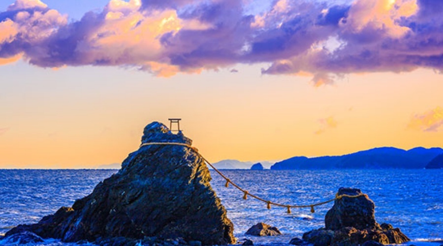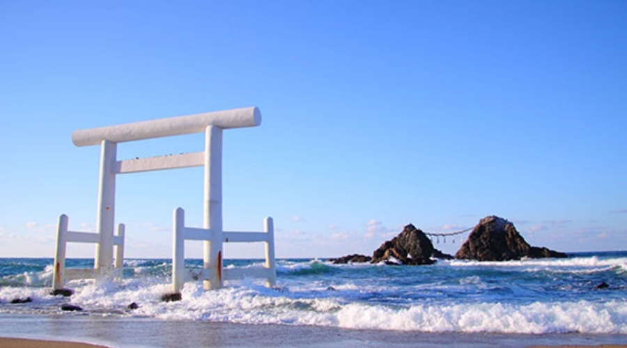 櫻井二見浦是糸島市著名的風景區之一。在離岸約 150 米的海上親密地挨在一起的「夫婦岩」,是結緣和夫妻美滿的象徵,被稱為聖地。