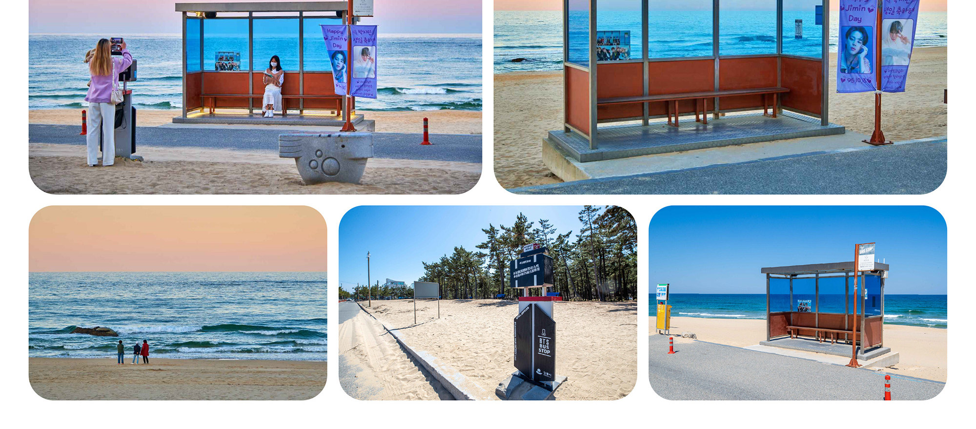 說到 BTS 的海岸取景地,註文津海邊的公車站絕對是粉絲必到的打卡點。這座看似普通的海邊公車站,因出現在 BTS 的作品中而成為韓流聖地。站在站牌旁,望著眼前奔騰的海浪與天際線相接的風景,仿佛能穿越時空,與偶像們的拍攝瞬間重合。海風吹拂著頭髮,聽著海浪的聲音,隨手按下快門,就能收穫一張滿載回憶與風景的同款照片,定格屬於自己的 ARMY 時刻。