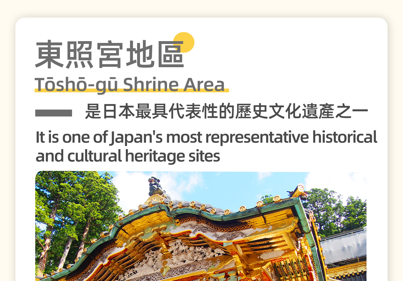 第一站:東照宮 江戶藝術的巔峰聖殿,是日本最具代表性的歷史文化遺產之一 從象徵智慧的「三猿」(非禮勿視、勿聽、勿言),到預示和平的「眠貓」,再到中國聖賢與神話瑞獸,堪稱日本工藝的百科全書 硃紅殿閣與參天古杉交織出莊嚴氣場,秋日楓紅浸染金箔的畫面更令人屏息