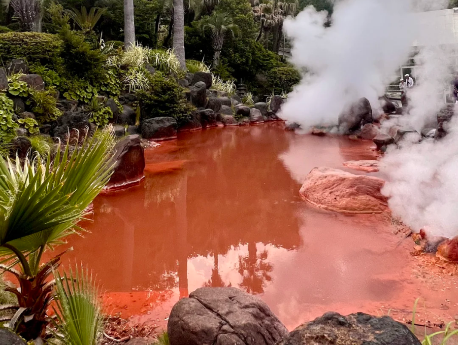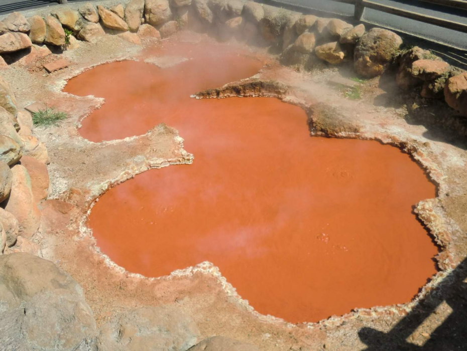 竈地獄的核心標誌是高達數米的間歇性噴泉,地熱噴氣夾帶著滾燙的溫泉水噴湧而出,伴隨著轟鳴聲,場面震撼。溫泉水質含豐富鐵質與礦物質,長期沈積形成鮮艷的橙紅色結晶巖層,與白色水汽、翠綠植被相映,構成獨特的色彩畫卷。園區內溫泉池遍布,部分池面終年沸騰翻湧,霧氣騰騰,宛如人間仙境,是攝影愛好者的絕佳取景地。