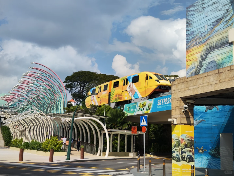 聖淘沙捷運是連接新加坡本島與聖淘沙島的跨座式單軌接駁交通,不屬地鐵網絡,但可無縫換乘地鐵。2007年運營,全長約2.1公裏,無人駕駛,全程僅12分鐘。