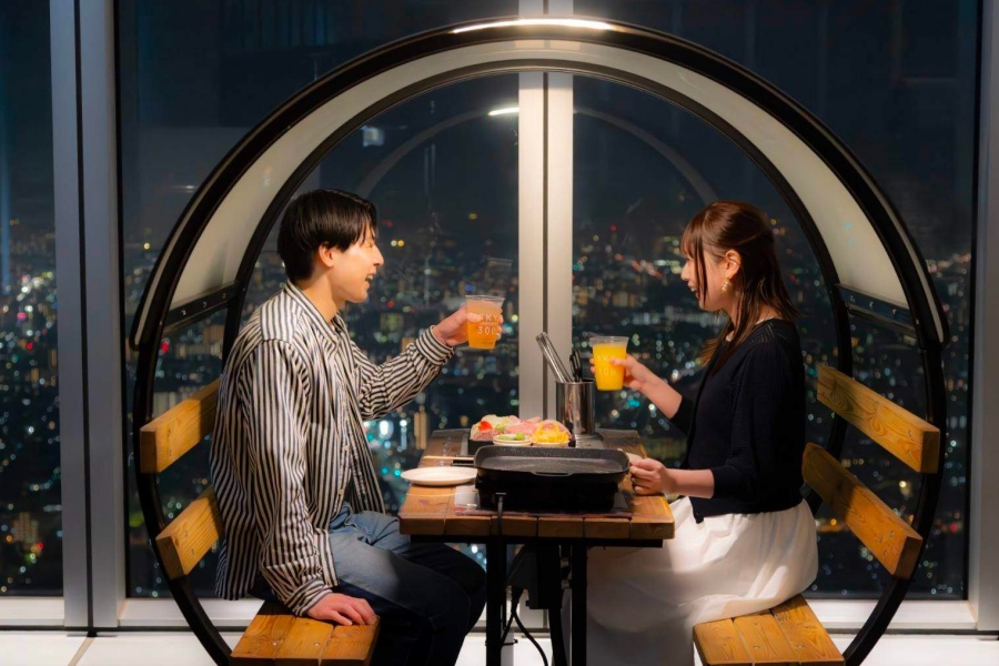 58 樓挑高空中庭園兼具景觀與社交屬性,不僅有獨具設計感的「雙塔」建築,還能舉辦 BBQ 派對,讓遊客在高空享受美食與戶外風光,創造獨特回憶。