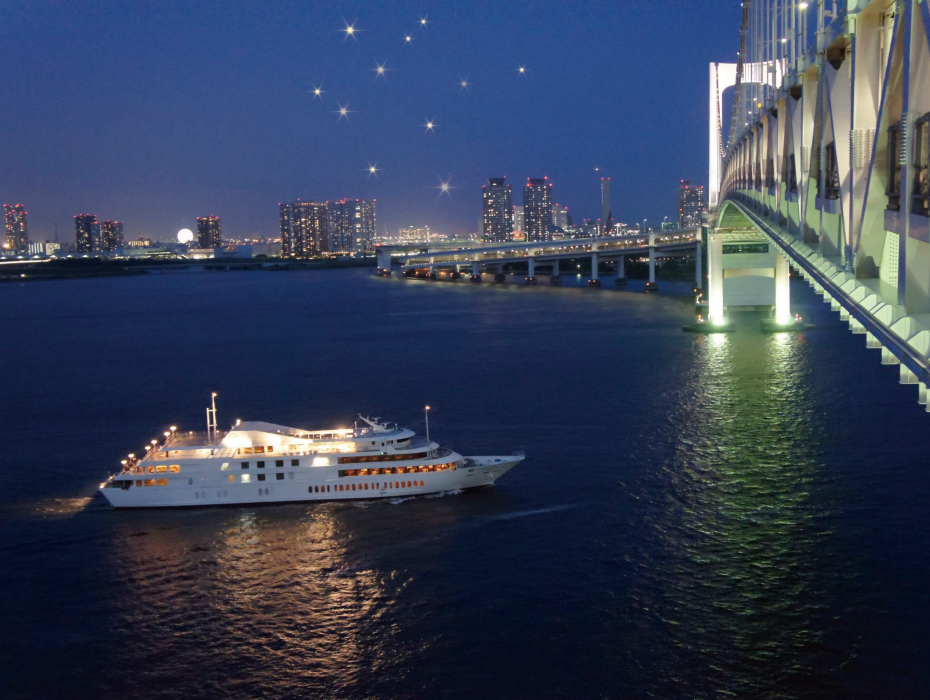 逃離喧囂的都市,駛入東京璀璨的夜色中。 欣賞東京塔、御臺場和東京晴空塔變幻成繽紛奇景,點亮夜空,見證城市蛻變成另一個世界。 享用精緻的日西合璧晚餐,犒勞您的味蕾。 您將享用包括開胃菜、湯、葷素主菜、甜點以及茶或咖啡的豐盛晚餐。 東京晚餐郵輪將為您的東京之旅增添額外的魅力!
