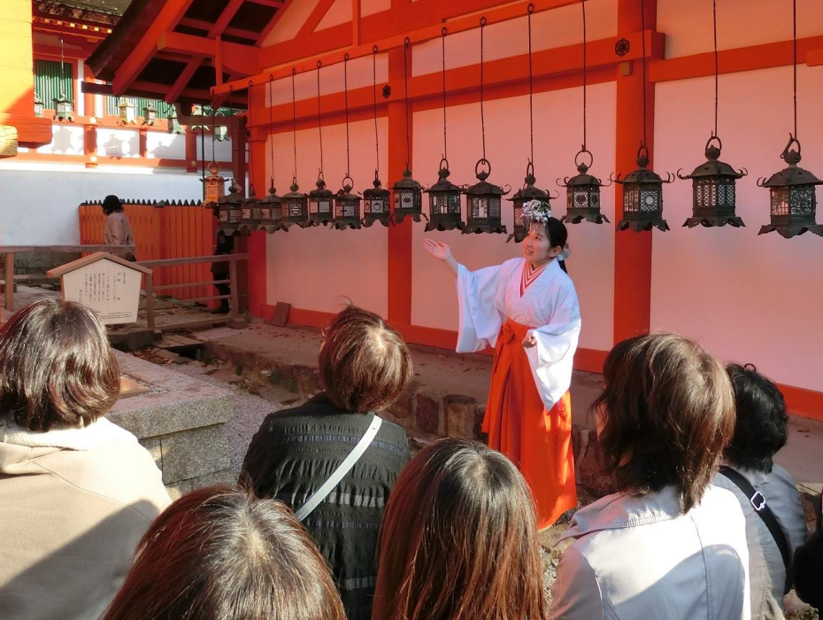 在春日大社,行程將會進入本殿特別參觀區域。然而,若因活動或營運狀況而無法進入特別參觀區域,則會改為參觀春日大社國寶殿或東大寺博物館。