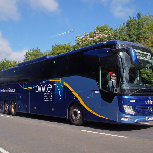 乘坐豪華巴士放鬆身心,享受免費WiFi、USB充電座,並透過個人VOX音訊耳機收聽導遊的現場解說
