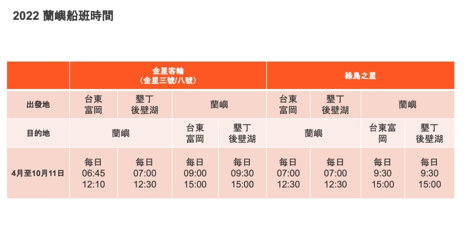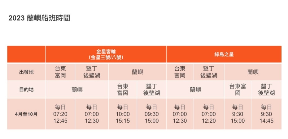 台東→蘭嶼約 100 分鐘,墾丁→蘭嶼約 120 分鐘