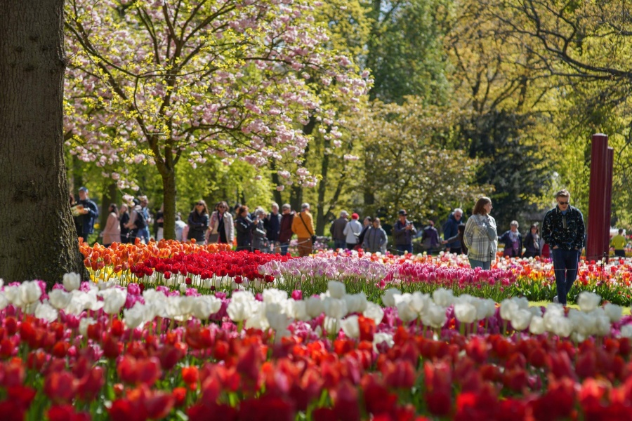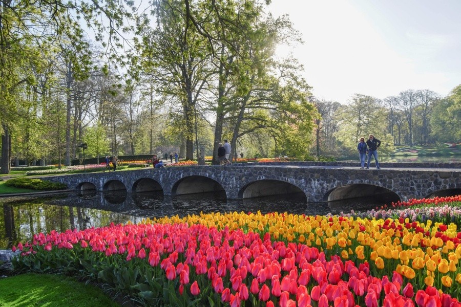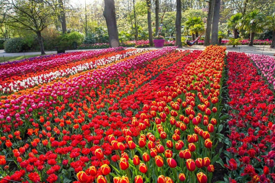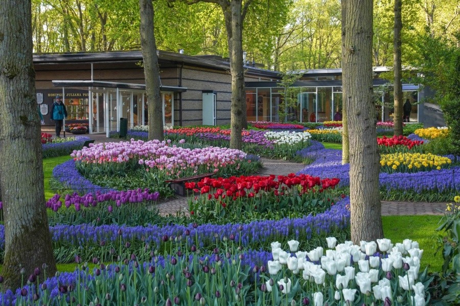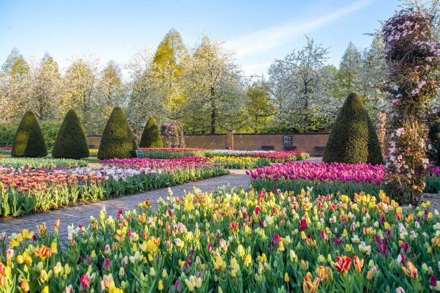 庫肯霍夫花園(Keukenhof)坐落於荷蘭利瑟,享有「世界最美春季花園」「歐洲花園」的美譽,佔地達 32 公頃。園區源自 15 世紀貴族獵園的廚房花園,現為全球最大球莖花卉展覽地,每年僅於 3 月 21 日至 5 月 12 日限定開放。園內種植 700 萬株球莖花卉,除 800 餘種鬱金香外,還囊括風信子、水仙、百合、玫瑰等數十種花卉,四季僅春季綻放,構成絢麗奪目的色彩盛宴。門票包含阿姆斯特丹出發的豪華隨上隨下巴士,每 30 分鐘一班,40 分鐘直達園區,來回行程靈活便捷。