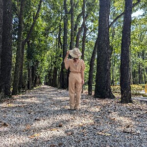 與覆蓋建築的樹木合影,感受大自然的生命力