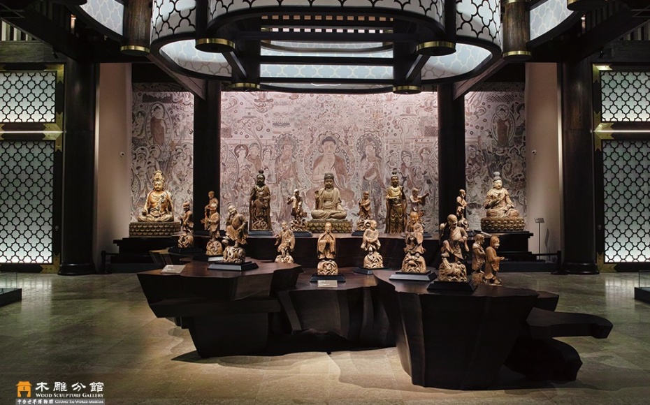 ·木雕分館位於中台禪寺園區內,空間給人舒適且溫暖的感受,展示著唐宋遼金以來木雕佛教造像,述說著斲木成形、漆彩團線的故事