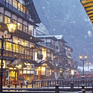 【銀山溫泉】 銀山溫泉據說是宮崎駿的動漫電影《千與千尋》的取景地,這條溫泉街兩岸是從大正時代到昭和初期的建築,鱗次櫛比的木製旅館,道路上厚厚的積雪,黃昏時倒映在河面上的煤氣燈,宛如進入到了動漫中。日本冬季必訪的一處絕境!