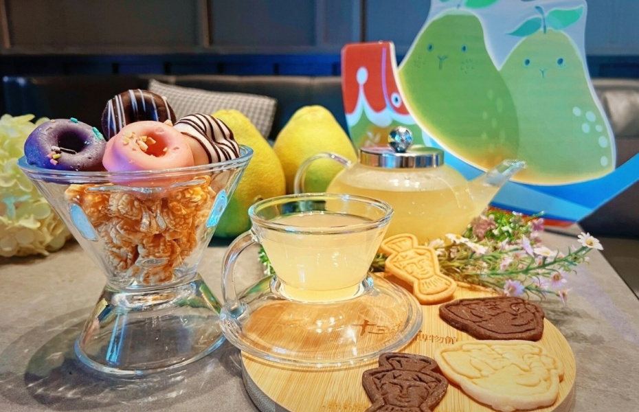 ·文旦柚茶: 特別選用八裏在地小農桃樂絲農場的優質文旦柚,以傳統工法細火熬制,完整保留柚子的自然芳香與營養。清新爽口的風味,能完美中和甜點的甜膩,為整體午茶體驗畫下清雅的句點。
