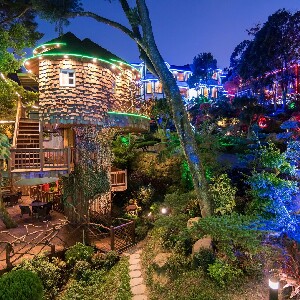 泡完溫泉到露台咖啡廳欣賞群山環繞的美景