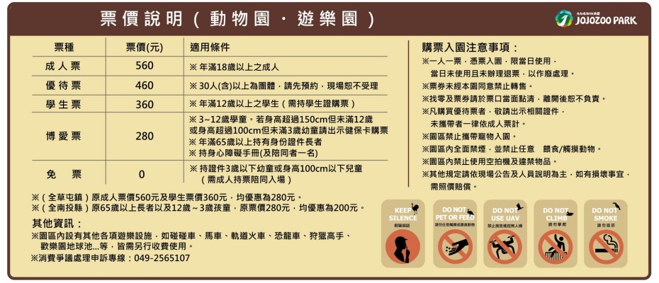 出發前務必至九九峰動物樂園 JOJOZOOPARK 臉書或官網查詢最新資訊