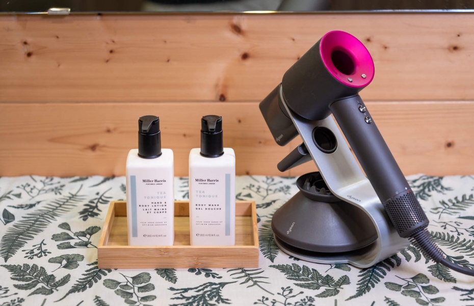 沐浴用品:洗髮乳、沐浴乳、潤絲、乳液、吹風機