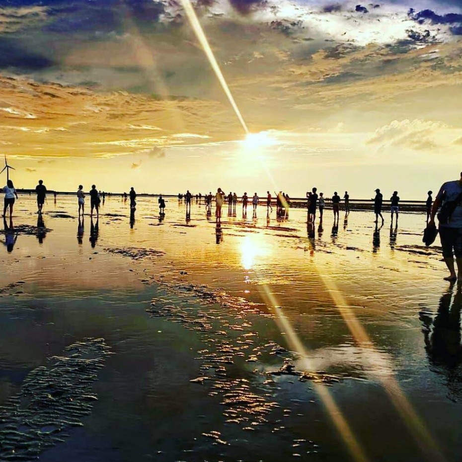 原名爲高美野生動物保護區,位於清水大甲溪出海口南側,面積廣達 1,500 公頃,擁有豐富的生態及景觀資源,無論從任何角度或鏡頭觀賞,橘紅色的夕陽搭配着遠方巨大的風車,都彷彿置身圖畫般,是絕對不容錯過的經典美景。