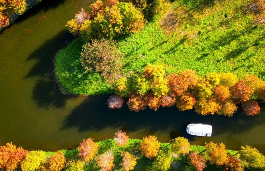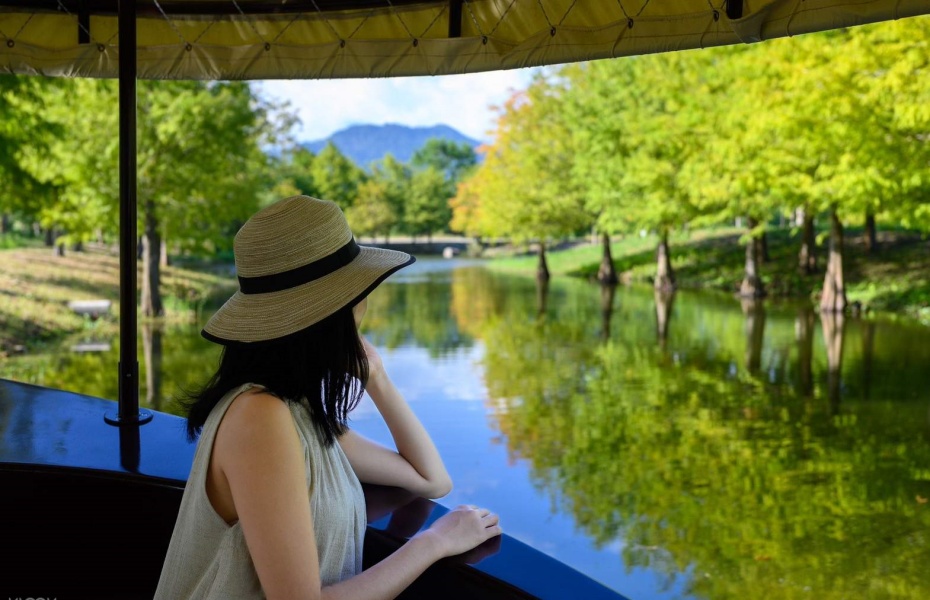 遊客2026攝影同好推薦來理想PAARK拍落羽松!下午陽光透過樹葉灑下來,光影超美~運河遊船的角度...