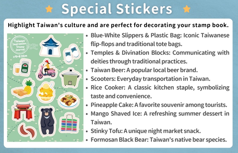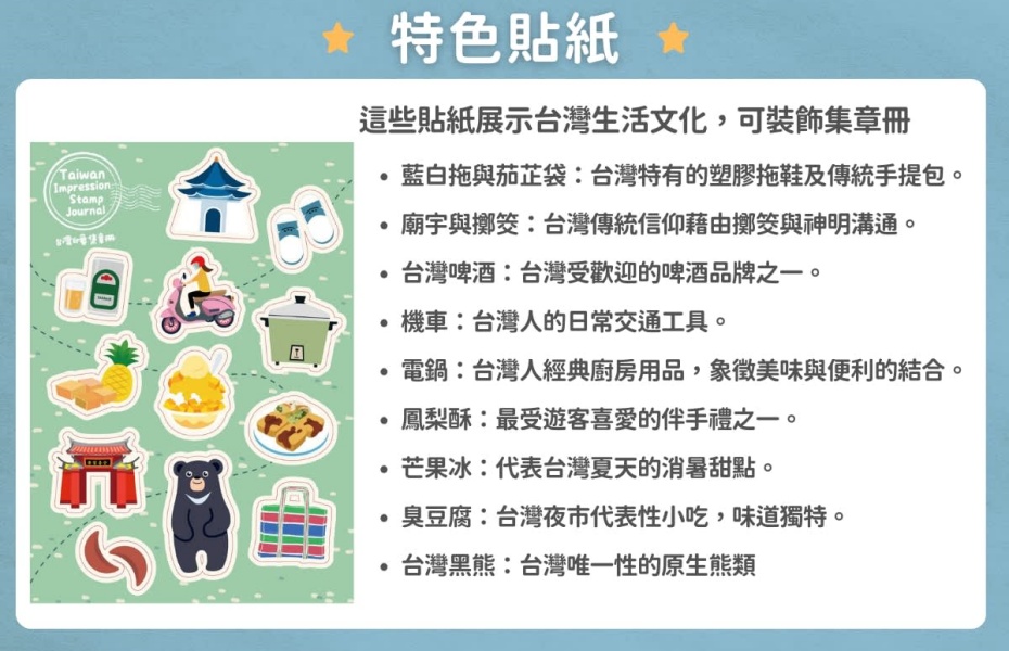 ·臺灣主題貼紙:自由裝飾,爲您的旅程增添個人風格。
