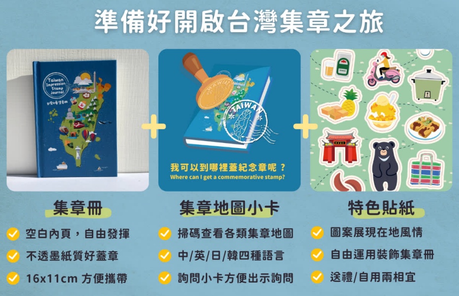 帶着「臺灣印象集章冊」,讓旅程充滿印記與創意,每次出遊都是獨一無二的紀念!