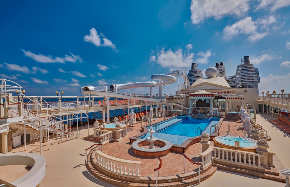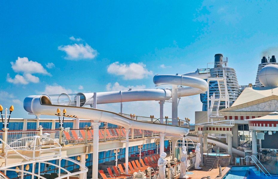 【船上設施】:星夢郵輪探索夢號設有凱撒滑水道、帕德嫩泳池、精品店、運動場、按摩池、健身房、SPA;Zodiac Theatre 歌劇院精彩表演及現場音樂演奏