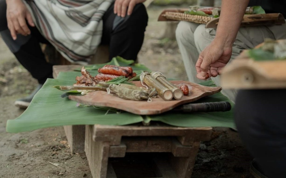 當燻煙升起,就是我們慢慢與彼此分享、感受生活的開始。 獵人帶著獵物下山的畫面,是加灣部落得到山林照顧的日常,我們圍在竹寮內的三石竈旁,聽著燻肉起火的方法,不只是保存食物,同時也燻著建材,好像過去燻祖屋一樣,也將我們的回憶保存了起來。 在竹寮聆聽著長輩分享狩獵的事蹟;認識部落常見作物—紅藜、月桃、樹豆、山蘇、蕗蕎、香蕉、刺蔥等—更難忘的是剝起曬乾的玉米粒,一切就如孩童記時期的忙活,簡單快樂地一起煮玉米粥。 在享用餐點前,我們手把手地製作食器,在備餐的過程中,燻食的煙香常伴左右,餐點紀錄著共同準備的溫度與土地的味道,經由簡單的調味與生活感的擺盤,端上來的是部落生活的點滴,享用族人日常的溫厚風味。 歡迎大家來花蓮秀林鄉,以慢慢的生活步伐走著,一同跟上太魯閣族人的文化與故事,感謝土地的恩賜,我們以永續的生活理念持續關懷著土地,大竹子走部落期待你來享受「野生活」!