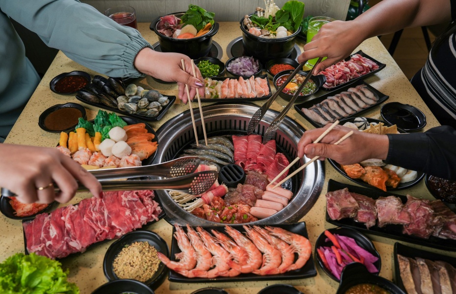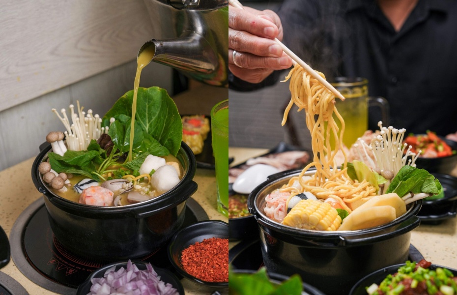 餐廳最大亮點是「一爐雙吃」,每桌配備共用烤爐與個人感應火鍋,既能體驗烤肉滋滋作響的香氣,又能享受火鍋暖心暖胃的滋味。超過 100 種食材選擇豐富,包括多種醃製肉品、新鮮海鮮、時令蔬菜、丸子與麵食,還有隱藏版起司球可主動點購。