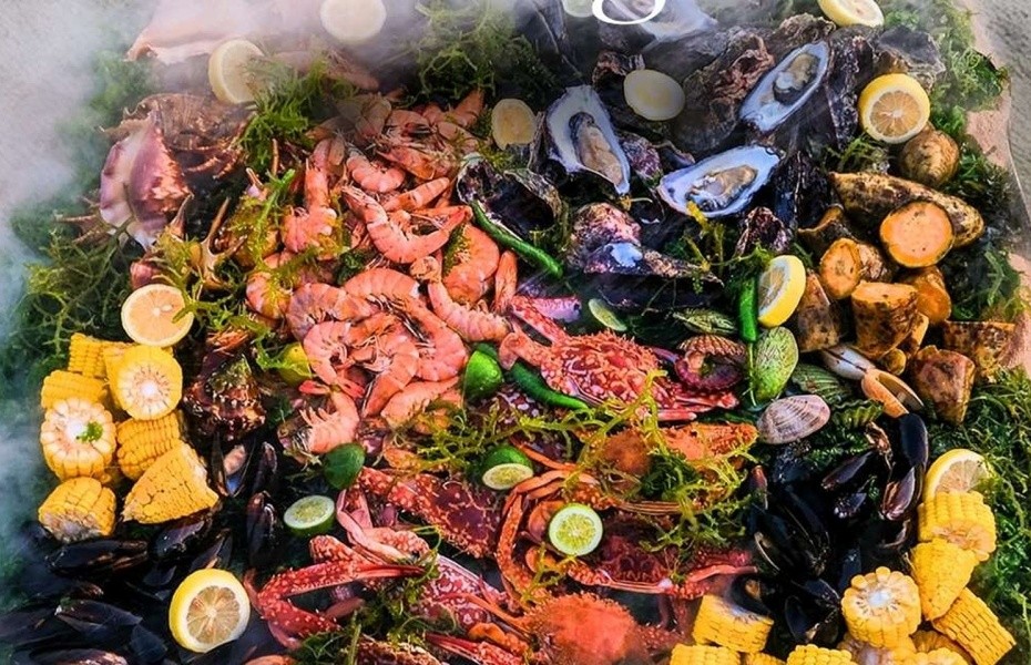 享用新鮮的海鮮和魚類,搭配 kanin sa buho,感受當地風味