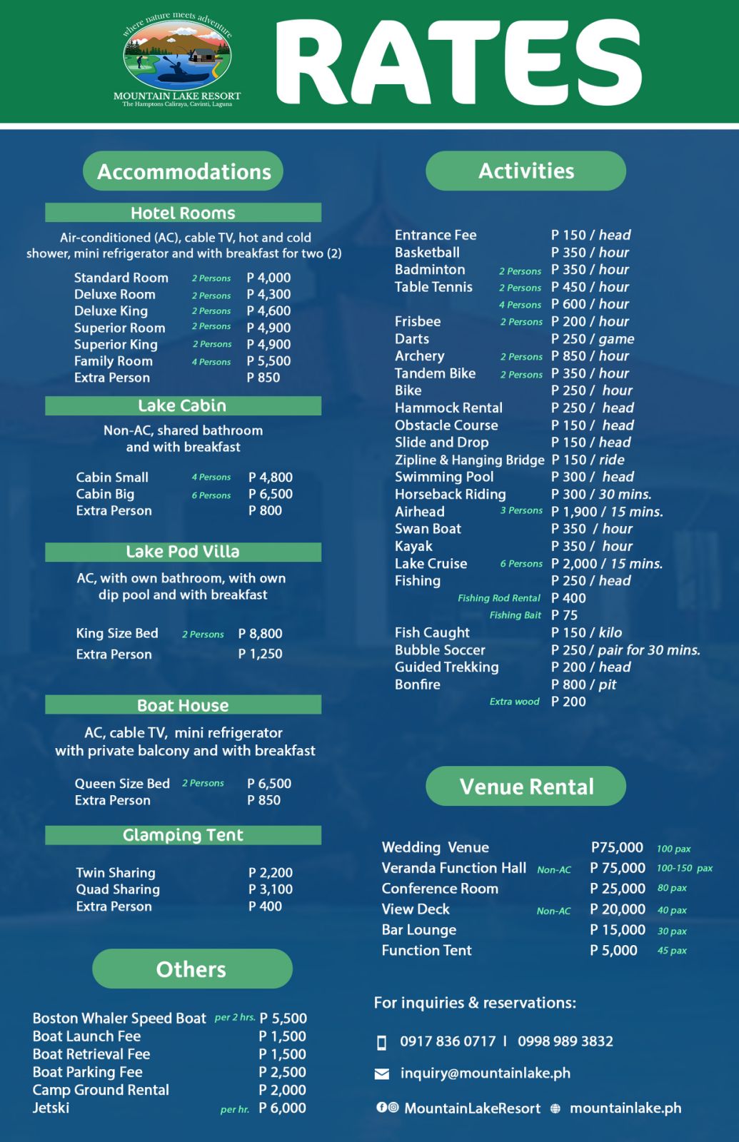 【聯絡方式】:如有疑問,請聯絡 Mountain Lake Resort: