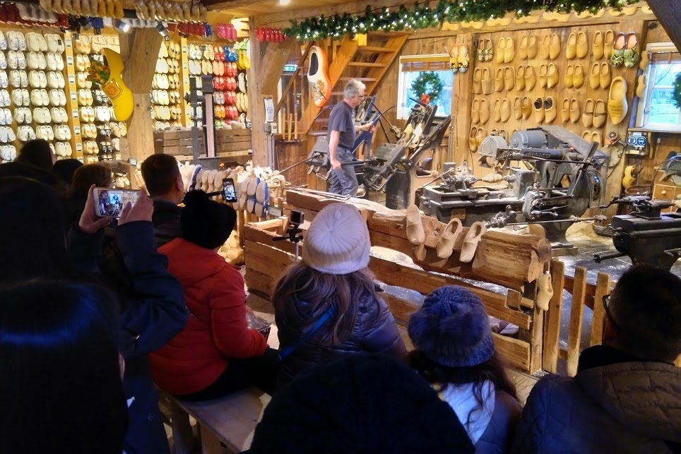 在這裡,您將親眼目睹荷蘭國寶級工藝 —— 木鞋的製作過程。導遊會為您解說,為什麼在潮濕的低窪地帶,木鞋曾是農民不可或缺的生活夥伴。您可以近距離觀察工匠如何利用白楊木,透過精湛的手藝或傳統機器,將一塊原木轉化為防水、舒適且色彩繽紛的木鞋。