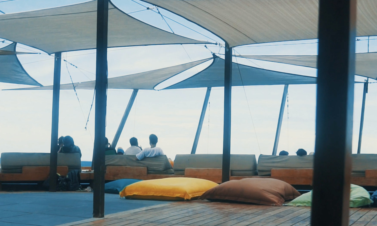 島上最耀眼的亮點,是號稱「亞洲最大」的 TawHai 漂浮酒吧。這座漂浮於海上的休閒空間,名字在當地語中意為「平靜」,恰如其分地演繹著愜意氛圍 —— 甲板上遍布日光浴床與吊床,躺臥其間可隨海浪輕搖,點一杯特調飲品,抬眼便是無邊海景。