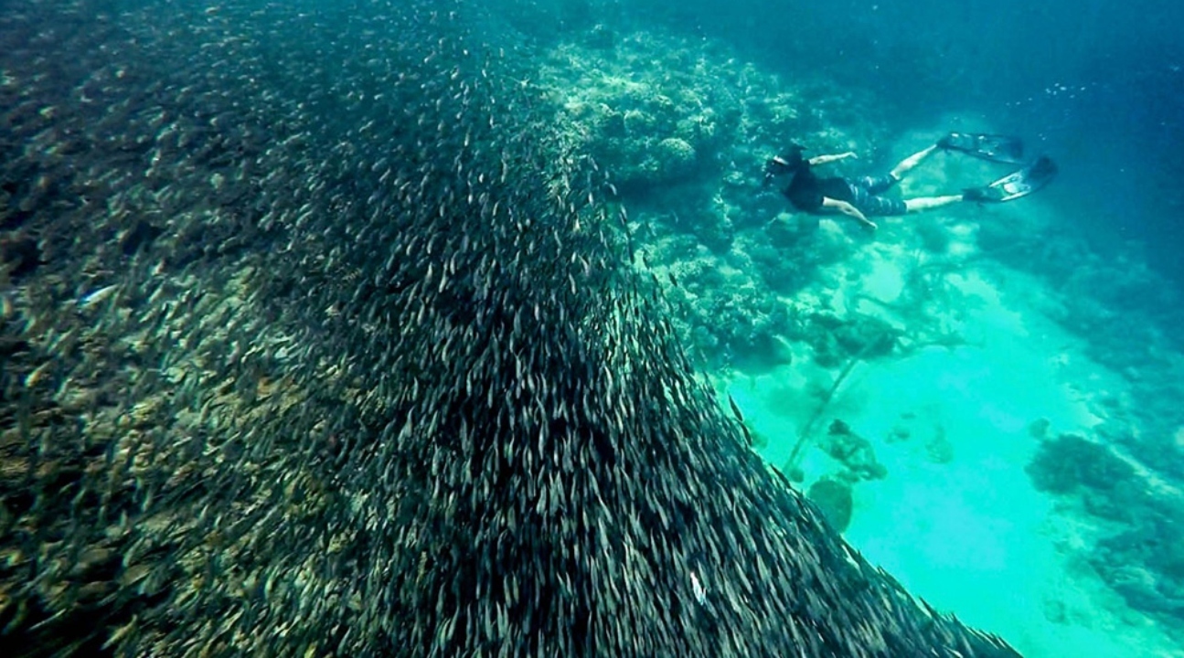 旅程以海洋生態探索拉開序幕。在沿海城鎮墨寶的帕納格薩馬海灘,只需從岸邊直接入水,就能開啟浮潛體驗 —— 數百萬條沙丁魚組成銀色旋渦,在清澈海水中形成震撼的「沙丁魚風暴」,伴隨著悠游的海龜與色彩繽紛的珊瑚礁,構成生動的海底畫卷。