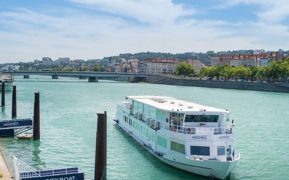遊船名稱為愛馬仕二號餐廳船,航行地點為索恩河。